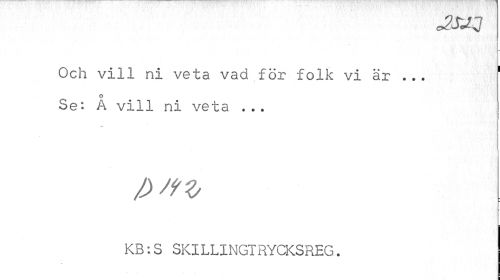 //// Och vill ni veta vad för folk vi är ... 1 //// o //// Se: A vill ni veta ... //// I*" //// KB:S SKILLINGTRYCKSREG. ////