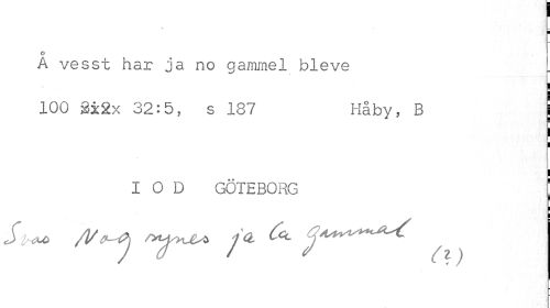 //// ? — //// ¦ //// o //// A vesst har ja no gammel bleve //// 100 3i2x 32:5, s 187 Håby, B //// I O D GÖTEBORG //// /l/^j jd Ccc //// / ' * ) ////