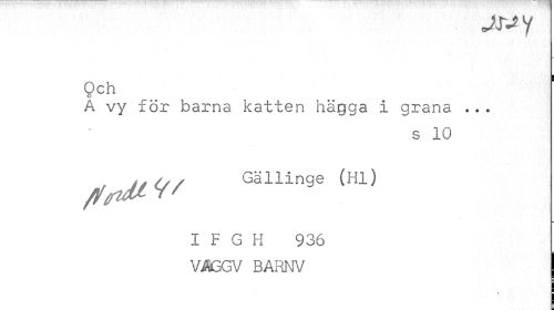 //// jtj y //// Och //// A vy för barna katten hägga i grana ... //// s 10 //// f^jf Gällinge (Hl) //// I F G H 936 VAGGV BARNV ////