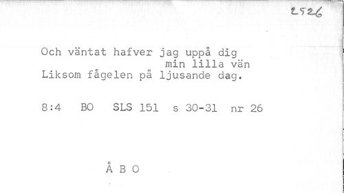 //// cLi //// Och väntat hafver jag uppå dig 1 //// min lilla vän Liksom fågelen på ljusande dag. //// 8:4 BO SLS 151 s 30-31 nr 26 //// ÅBO ////