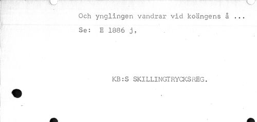 //// Och ynglingen vandrar vid koängens å ... Se: E 1886 j, //// % //// KB:S SKILLINGTRYCKSREG. //// m ////