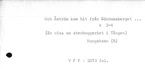 //// o //// Och Aström kom hit fran Söndumsberget .?. //// s 2-4 //// (En visa om stenhuggeriet i Tången) //// Kungshamn (B) //// V F F : 2073 fol. ////