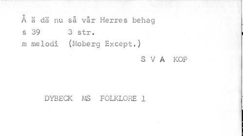 //// o //// A ä dä nu så vår Herres behag //// s 39 3 str. i //// m melodi (Moberg Except.) //// SVA KOP DYBECK MS FOLKLORE 1 ////