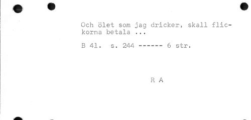 //// i //// Och ölet som jag dricker, skall flickorna betala ... //// B 41. s. 244 --- 6 str. //// R A ////
