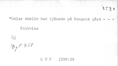 //// "Odlar Adelin han tjänade på Kungens gård - - - //// Folkvisa //// »« //// Oj //// LUF 1599:29 ////