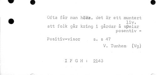 //// Ofta får man höziB, det är ett muntert //// att folk går kring i gårdar å spelar //// posentiv - //// Positiv-visor s. s 47 //// V. Tunhem- (Vg) //// » • //// I F G H : 2143 //// v*1 "-v ////
