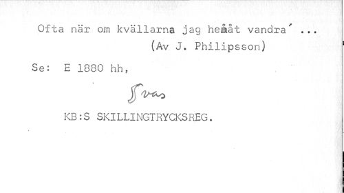 //// Ofta när om kvällarna jag heååt vandra' ... //// (Av J. Philipsson) : //// Se: E 1880 hh, //// J '^o //// KB:S SKILLINGTRYCKSREG. //// » ////