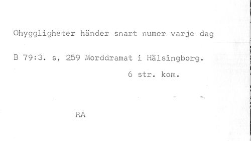 //// Ohyggligheter händer snart numer varje dag //// B 79:3. s, 259 Morddramat i Hälsingborg. //// - //// 6 str. kom. //// ¦ //// RA //// s ////