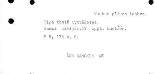 //// Vanhan piikan lanbra. //// W Oipa tässä tyttäressä, //// Ramsa Kivijärvi? Uppt. bastrén. //// R 5, 176 b, 8. //// ÅBO RANCKEN MS //// --r ////