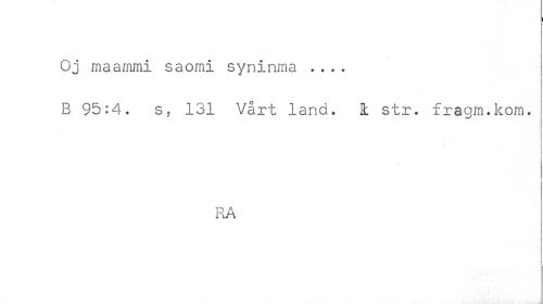 //// i //// Oj maammi saomi syninma ... //// B 95:4. s, 131 Vårt land. 1 str. fragm.kom. //// { //// DA i ur\ //// r. ¦ ////