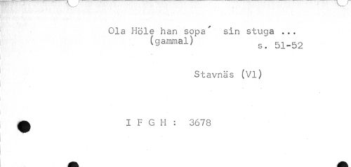 //// Ola Höle han sopa" sin stuga ... //// (gammal) 51_52 //// Stavnäs (Vi) A I F G H : 3678 ////
