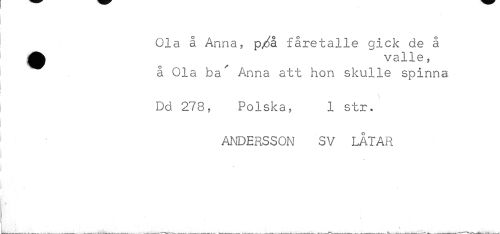 //// Ola å Anna, p/å fåretalle gick de å ^ å Ola ba' Anna att hon skulle spinna //// Dd 278, Polska, 1 str. //// andersson sv låtar //// ! ////