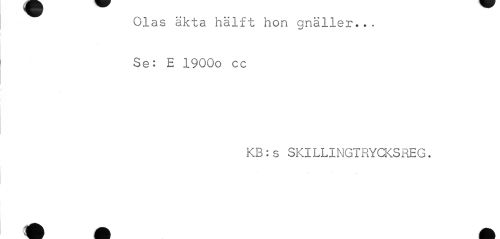 //// Olas äkta hälft hon gnäller... Se: E 1900o cc //// KB:s SKILLINGTRYCKSREG. ////
