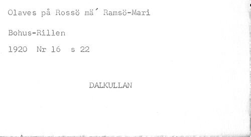 //// 01 clV0 S Da Rossö mä Ramsö-Mari //// I //// Bohus-RIllen //// 1920 Nr 16 s 22 j //// i i //// I //// i //// DALKULLAN //// > ////