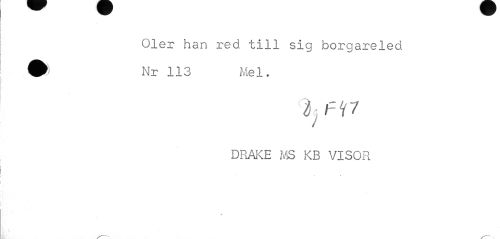 //// Oler han red till sig borgareled Nr 113 Mel. //// DRAKE MS KB VISOR //// * //// i. ////