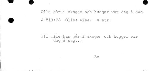 //// Olle går i skogen och hugger var dag å dag. % A 518:73 Olles visa. 4 str. //// Jfr Olle han går i skogen och hugger var //// dag å dag... //// RA //// v—i*. ////