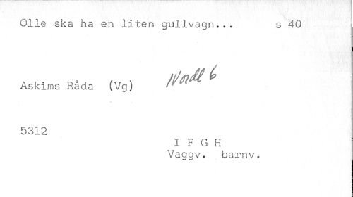//// Olle ska ha en liten gullvagn... s 40 //// Askims Råda (Vg) /l/fl^é 5312 //// I F G H Vaggv. barnv. ////