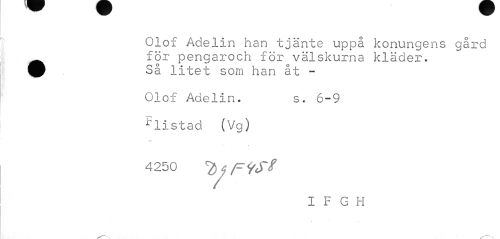 //// Olof Adelin han tjänte uppå konungens gård för pengaroch för välskurna kläder. 9 Så litet som han åt - //// Olof Adelin. s. 6-9 //// ^listad (Vg) //// 4 250 f F 9S? //// I F G H ////