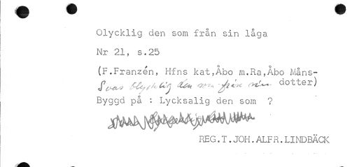 //// Olycklig den som från sin låga Nr 21, s.25 //// (F.Franzén, Hfns kat,Åbo m.Ra,Åbo Måns- //// ^J ^ dotter) //// Byggd på : Lycksalig den som ? //// REG.T.JOH.ALF R.LINDBÄCK ////