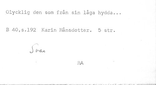 //// Olycklig den som från sin låga hydda... B 40,s.192 Karin Månsdotter. 5 str. //// J i^U //// RA ////