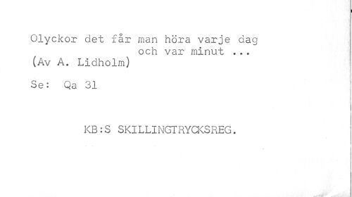 //// I //// Olyckor det får man höra varje dag //// och var minut .?. //// (Av A. Lidholm) //// Se: Qa 31 //// KB:S SKlLLINGT RYCKSREG. ////