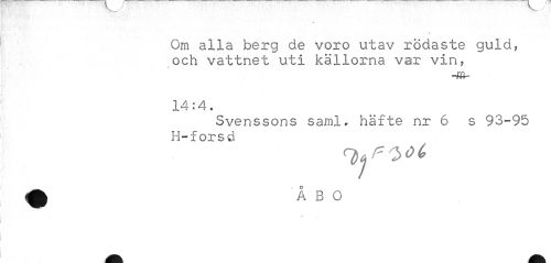 //// > . ' • ' 1 # Om alla berg de voro utav rödaste guld, och vattnet uti källorna var vin, //// 14:4, //// Svenssons saml, häfte nr 6 s 93-95 H-forsd ////