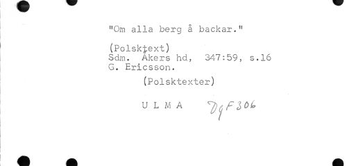 //// n0m alla berg å backar." (Polsk£ext) //// Sdm. Åkers hd, 347:59, s.16 G. Ericsson. //// (Polsktexter) U L M A f l bi* ////