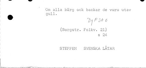 //// Om alla bärg ock backar de vuru utav gull. //// (Borgstr. Folkv. 21) //// s 24 //// STEFFEN SVENSKA LÅTAR ////