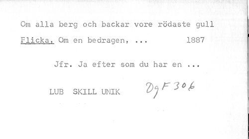 //// Om alla berg och backar vore rödaste gull Flicka, Om en bedragen, ... 1887 //// Jfr. Ja efter som du har en //// 7)A r 30 //// LUB SKILL UNIK ~ J ^ ////
