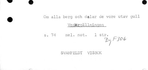 //// ^ Om alla berg och dalar de vore utav gull //// VedMrgäIlningen //// s. 74 mel. not. 1 str. //// Flöt, //// SVANFELDT VISBOK //// ^—... ////