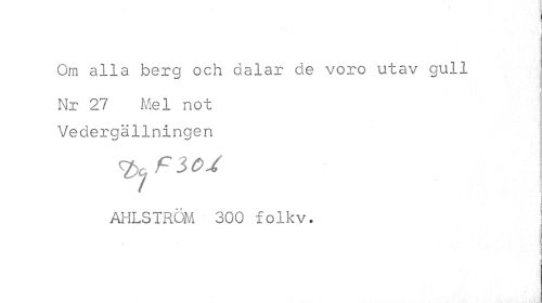 //// i //// j //// i //// Om alla berg och dalar de voro utav gull //// Nr 27 Mel not Vedergällningen //// tyj P3 OX //// i //// AHLSTRÖM 300 folkv. ! ////