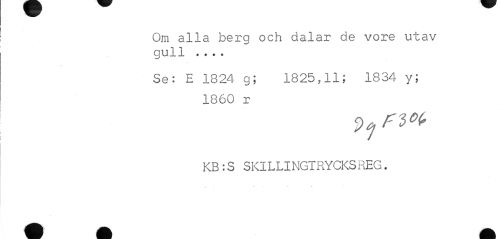 //// Om alla berg och dalar de vore utav gull ... //// Se: E 1824 g; 1825,11; 1834 y; //// 1860 r //// KB:S SKILLINGTRYCKSREG. //// . ... a . ////