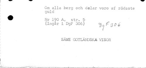 //// Om alla berg och dalar voro af rödaste guld //// w Nr 190 A, str. 5 //// (Ingår i DgF 306) y f qq £ //// SÄWE GOTLÄNDSKA VISOR ////