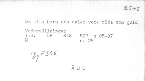 //// Om alla berg och dalar vore röda som guld Vedergällningen //// 7:4. LF SLS 523 s 85-87 N nr 28 //// ÅBO //// t ////