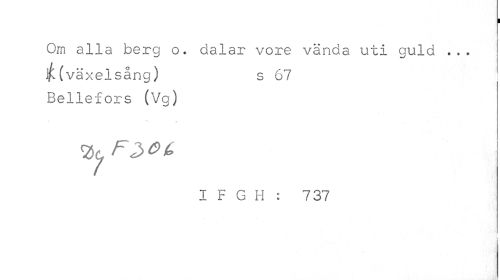 //// I //// Orn alla berg o. dalar vore vända uti guld ... //// t- (växelsång) s 67 //// Bellefors (Vg) //// r //// I F G H : 737 ////