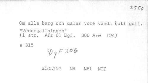//// 2rr<? //// Om alla berg och dalar vore vända fcuti gull. "Vedergällningen" //// (1 str. Afz 61 Dgf. 306 Arw 124) s 315 //// ¦ //// SÖDLING MS MEL NOT ////