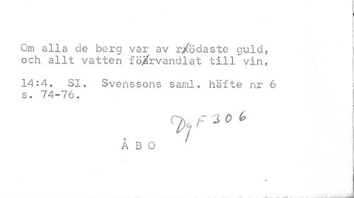 //// Om alla de berg var av r/ödaste guld, och allt vatten föXrvandlat till vin, //// 14:4. SI. Svenssons sarnl. häfte nr 6 s. 74-76. //// % F 3 O * //// ÅBO ////