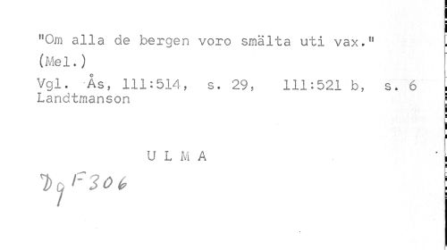 //// "Om alla de bergen voro smälta uti vax." (Mel.) //// Vgl. -Ås, 111:514, s. 29, 111:521 b, s. 6 Lanötmanson j //// U L M A ¦ , //// T)o i-3o t //// % ////