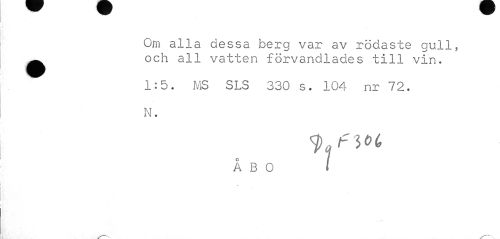 //// Om alla dessa berg var av rödaste gull, Ä och all vatten f orva ndlades till vin. //// 1:5. MS SLS 330 s. 104 nr 72. N. //// ÅBO l ////