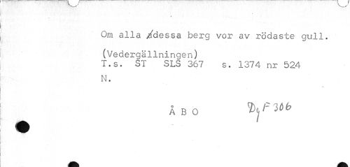 //// # //// Om alla /dessa berg vor av rödaste gull. (Vedergällningen) //// T.s. ST SLS 367 s. 1374 nr 524 N. //// ÅBO Y"306 ////