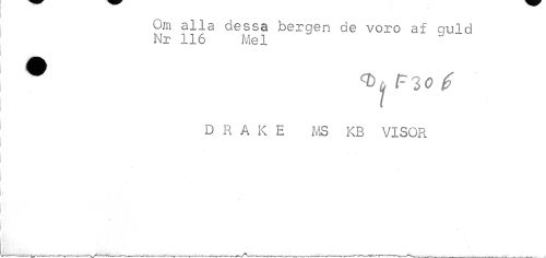 //// Om alla dessa bergen de voro af quld Nr 116 Mel //// DRAKE MS KB VISOR //// •I ////