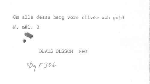 //// % //// Om alla dessa berg vore silver och guld M. mål. 3 //// OLAUS OLSSON REG //// ^ F3b(? ////