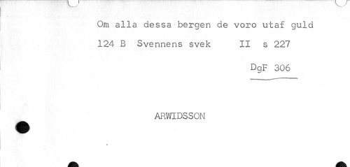 //// Om alla dessa'bergen de voro utaf guld 124 B Svennens svek II s 227 //// DgF 306 //// ARWIDSSON //// % ////