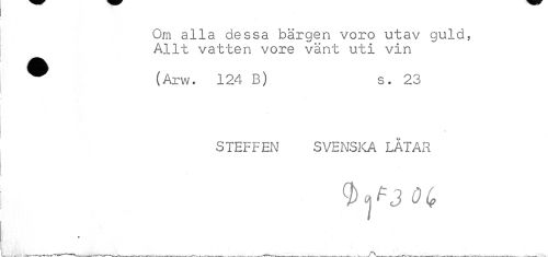 //// Om alla dessa bärgen voro utav guld, Allt vatten vore vänt uti vin //// ^ (Arw. 124 B) s. 23 //// < //// STEFFEN SVENSKA LÅTAR ////