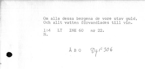 //// Om alla dessa bergena de vore utav guld, Och allt vatten förvandlades till vin. //// 1:4 LT INE 60 nr 22. N. //// ÅBO ty^flOé //// ? 'V //// % ////