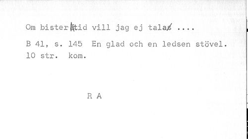//// Om bister|$tid vill jag ej tala/ ... . //// B 41, s. 145 En glad och en ledsen stövel. 10 str. kom. //// R A ////