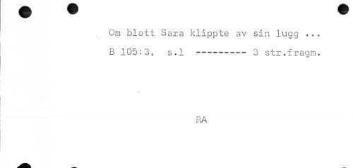 //// Orn blott Sara klippte av sin lugg . . . B 105:3, s.l ---3 str.fragm. //// RA ////
