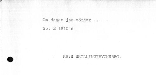 //// Om dagen jag sörjer ... Se: E 1810 d //// ^ KB:S SKILLINGTRYCKSREG. ////