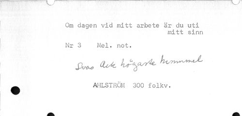 //// Om dagen vid mitt arbete är du uti //// mitt sinn //// Nr 3 Mel. not. ^ AHLSTRÖM 300 folkv. ////