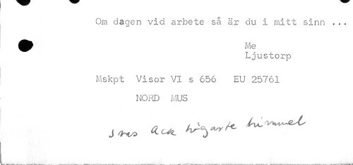 //// Om dagen vid arbete så är* du i mitt sinn . . . //// Qt Me //// Ljustorp //// Mskpt Visor VI s 656 EU 25761 //// NORD MUS ////